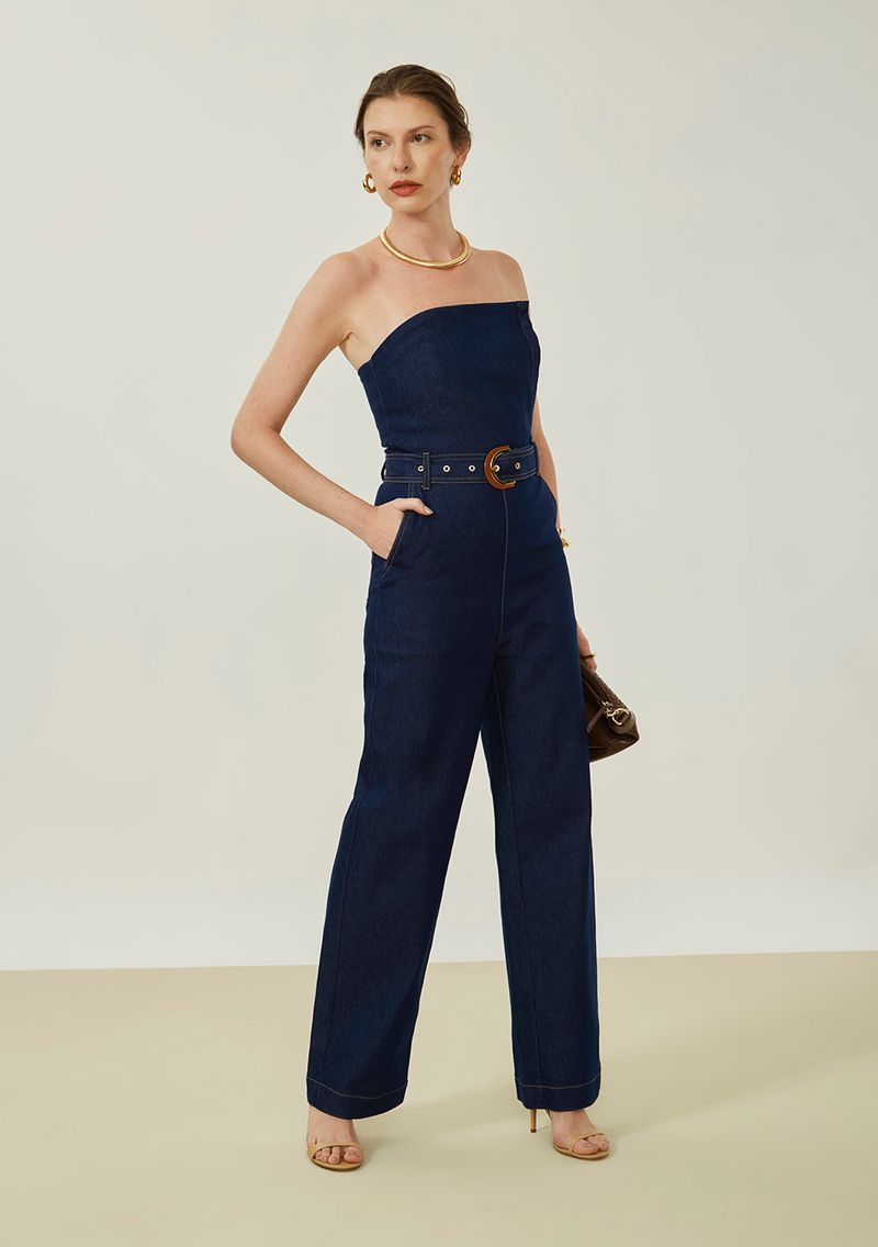 FemininoRoupasMacacões e MacaquinhosMacacão Maria.Valentina Ajustado Ombro A Ombro Sem Manga Longo Azul