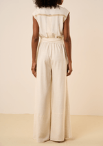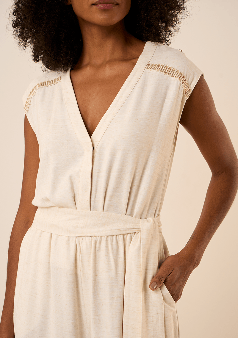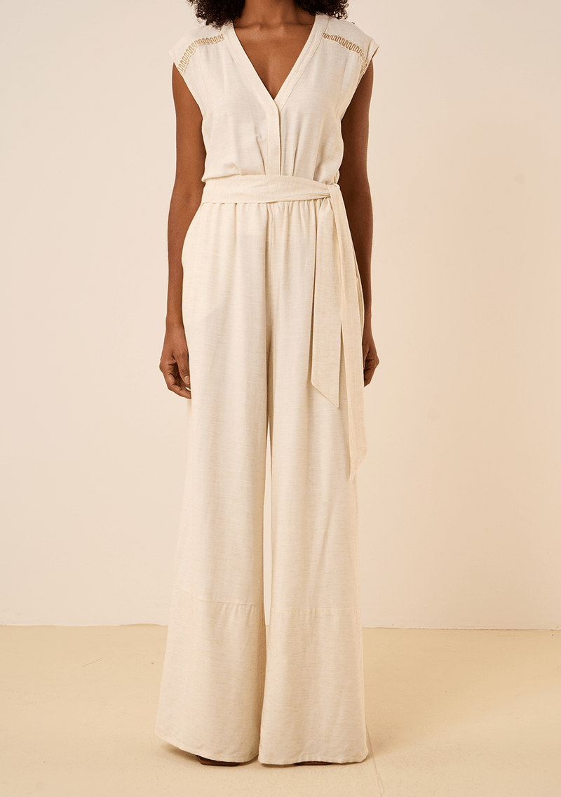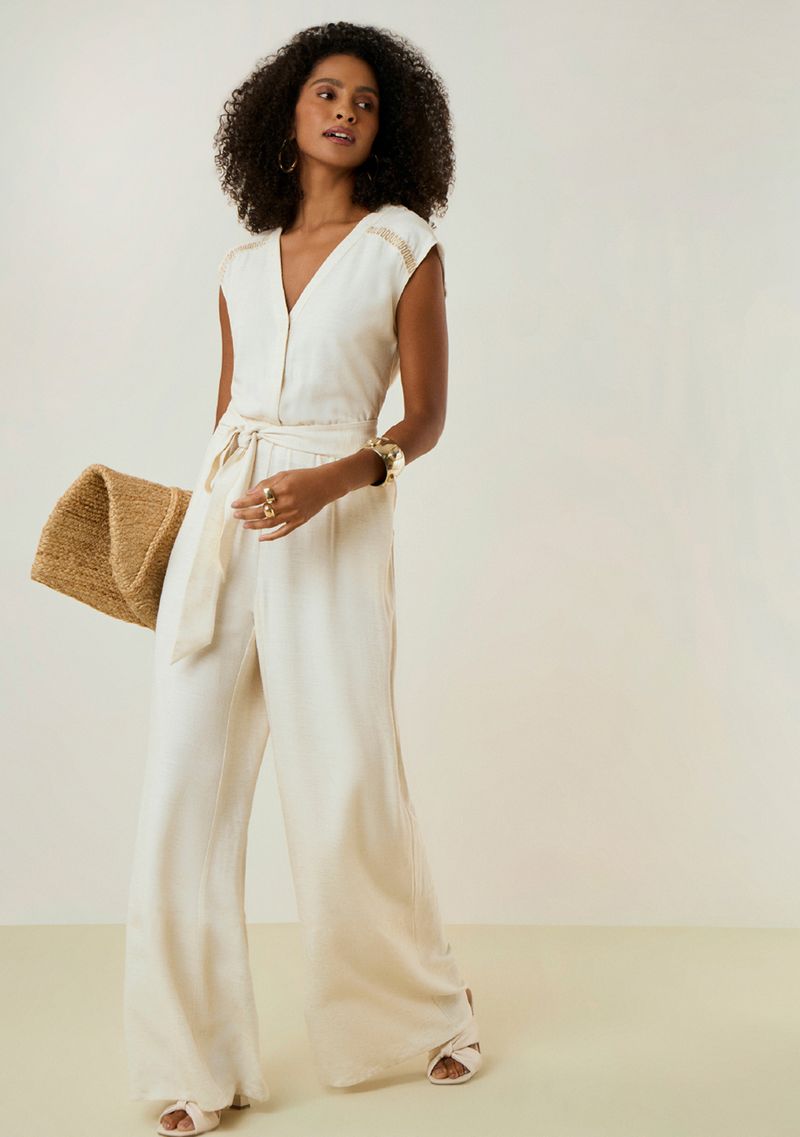 Macacão Maria.Valentina Solto Decote V Sem Manga Longo Bege