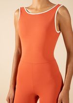 Macacão Morena Rosa Ajustado Decote Careca Sem Manga Longo Marrom