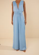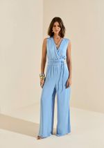 Macacão Morena Rosa Ajustado Decote Transpassado Sem Manga Longo Azul