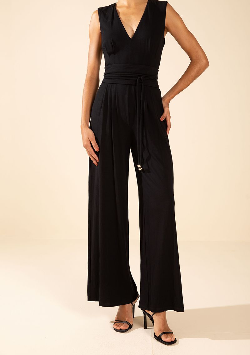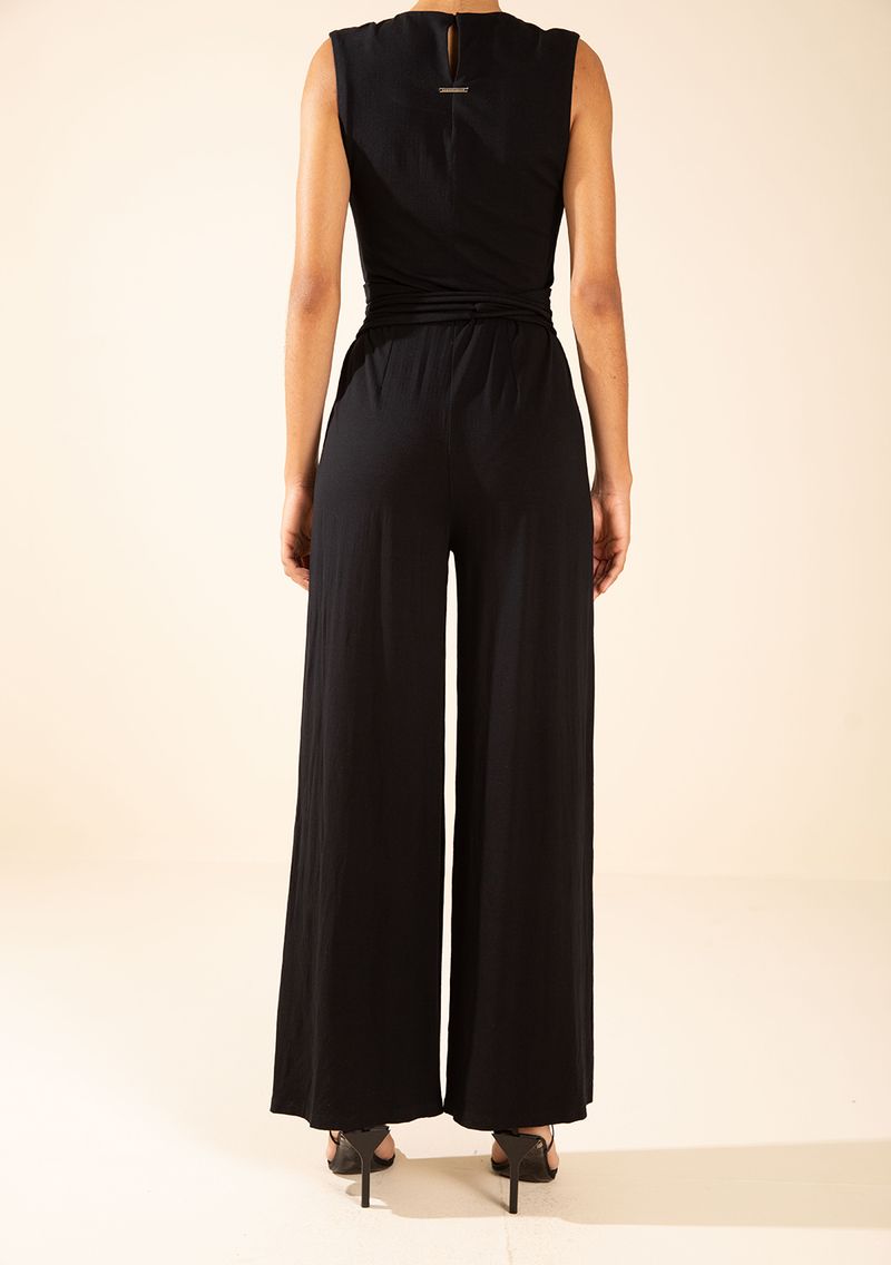 Macacão Morena Rosa Ajustado Decote V Sem Manga Longo Preto