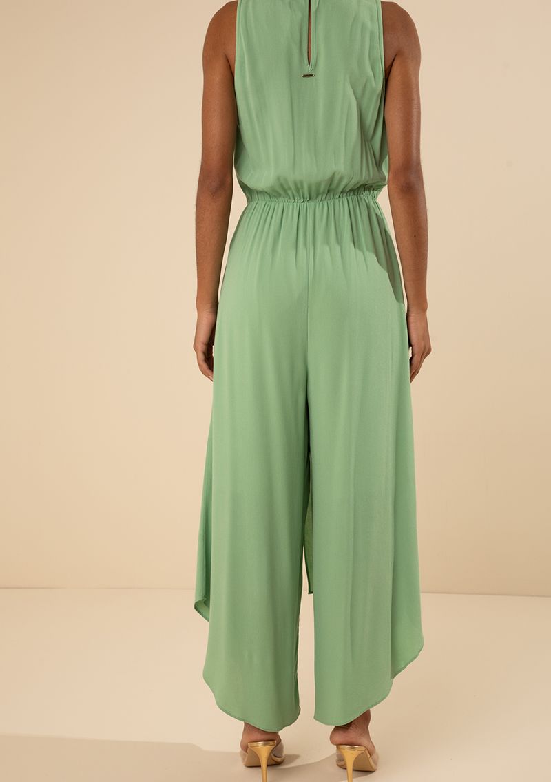 Macacão Morena Rosa Solto Decote V Sem Manga Midi Verde