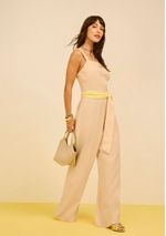 Macacão Zinco Ajustado Decote Reto Sem Manga Longo Bege