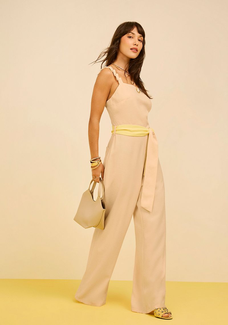 FemininoRoupasMacacões e MacaquinhosMacacão Zinco Ajustado Decote Reto Sem Manga Longo Bege
