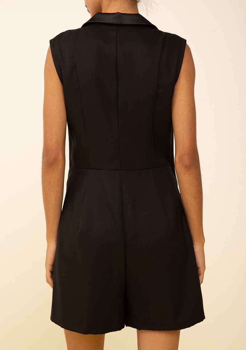 Macacão Zinco Ajustado Decote V Sem Manga Curto Preto