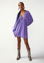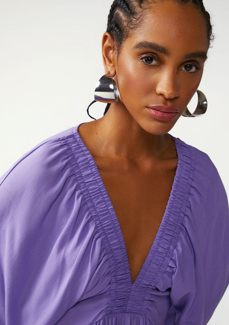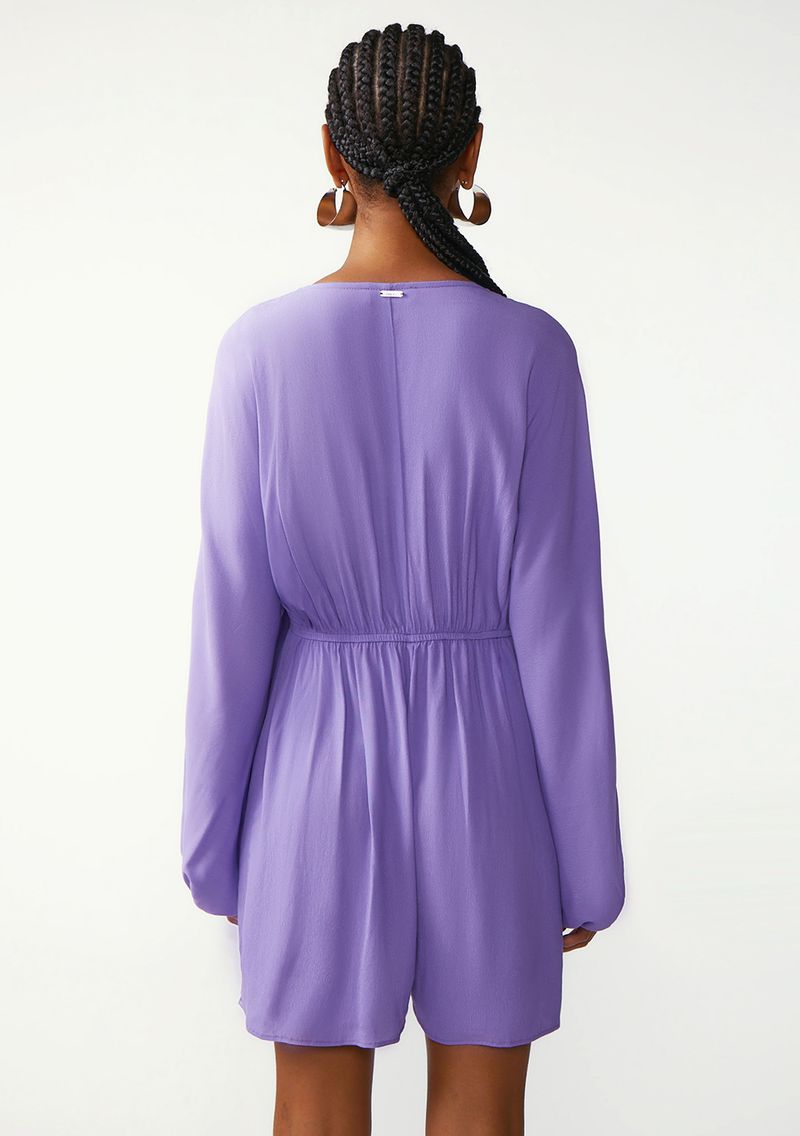 Macacão Zinco Solto Decote V Manga Longa Curto Roxo
