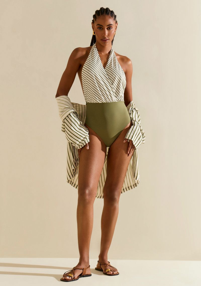 FemininoPraiaBiquínisMaiô Morena Rosa Frente Única Bojo Removível Verde