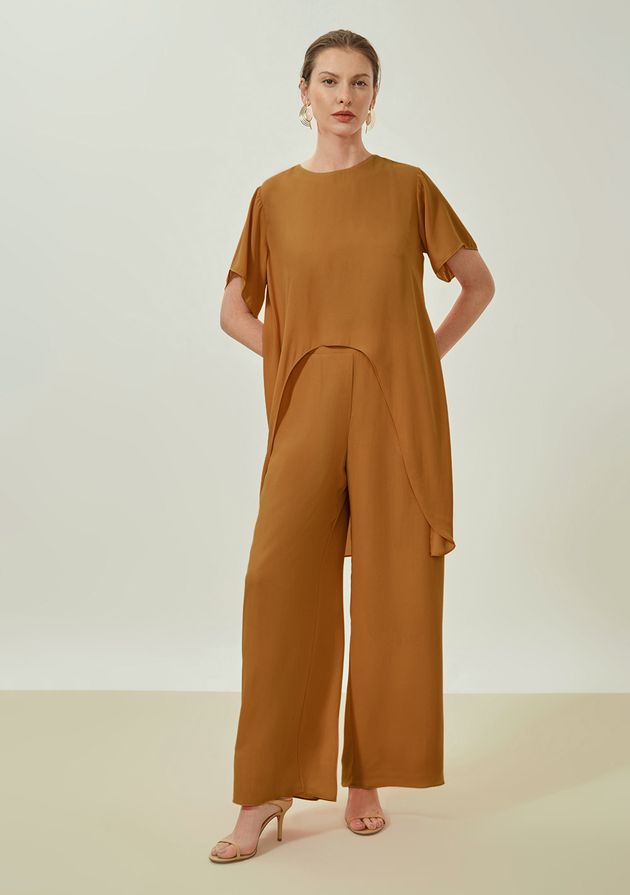Calça Maria.Valentina Pantalona Alta Marrom