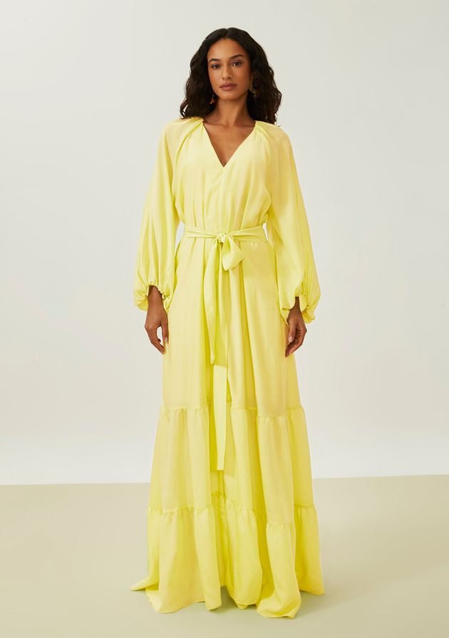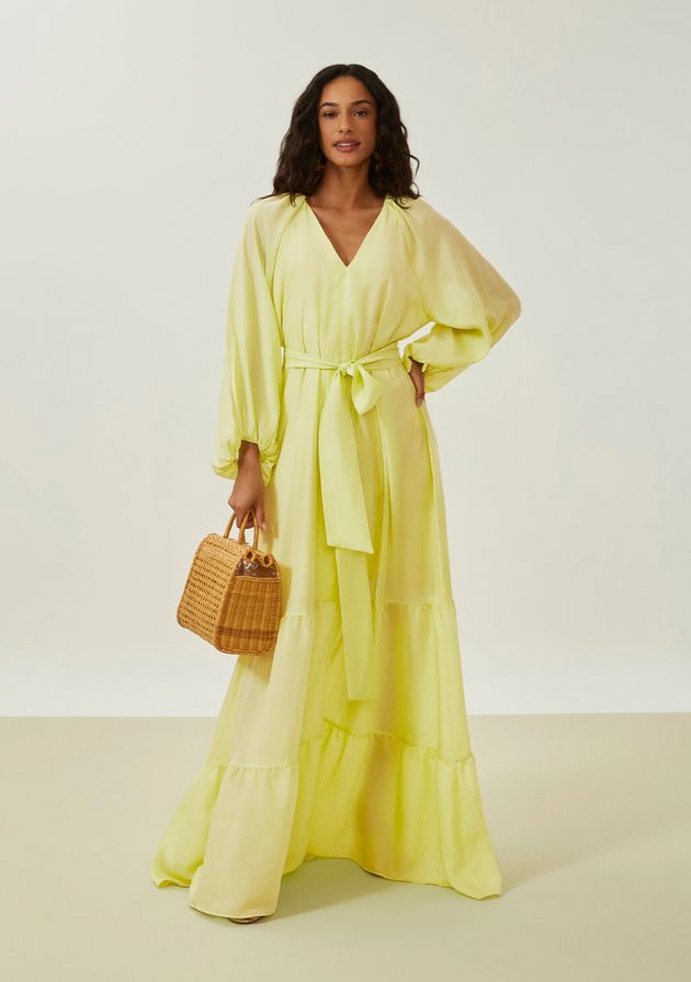 Vestido Maria.Valentina Solto Decote V Manga Longa Longo Verde