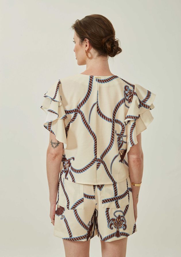 Blusa Maria.Valentina Solta Decote V Manga Curta Cropped Bege