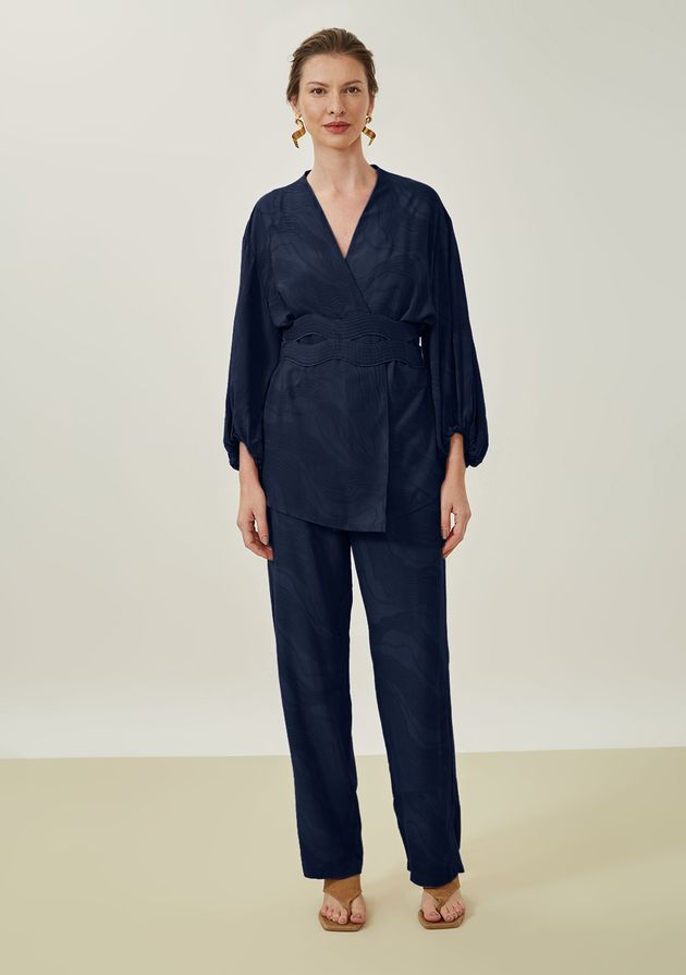 Kimono Maria.Valentina Solto Manga Longa Alongado Azul Escuro