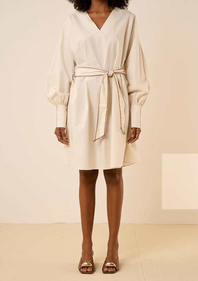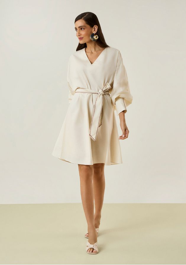Vestido Maria.Valentina Solto Decote V Manga Longa Curto Off White