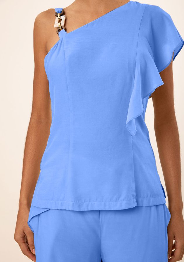 Blusa Maria.Valentina Solta Um Ombro Só Manga Curta Padrão Azul