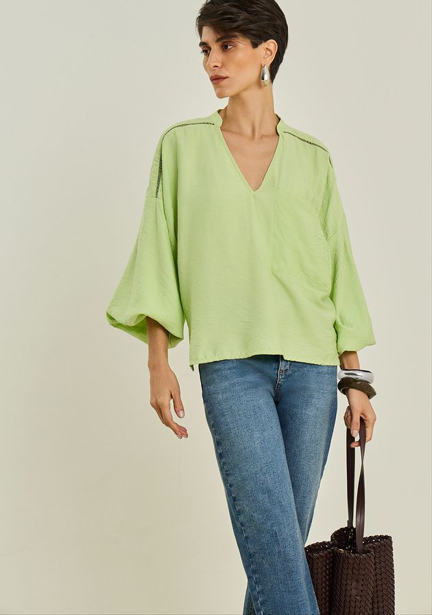 Blusa Maria.Valentina Solta Decote V Manga Longa Padrão Verde
