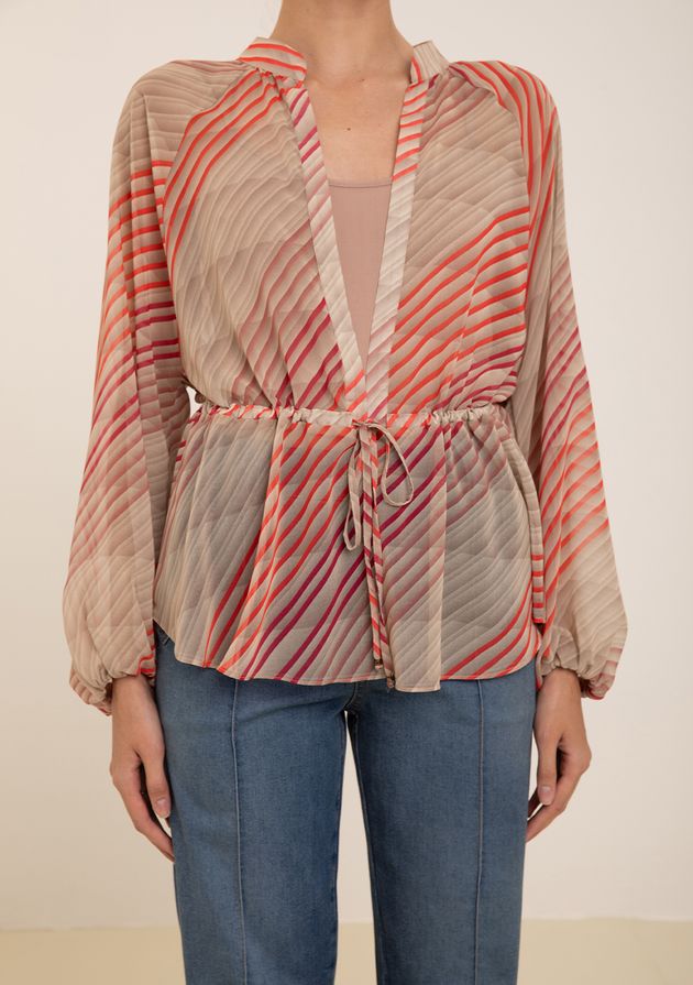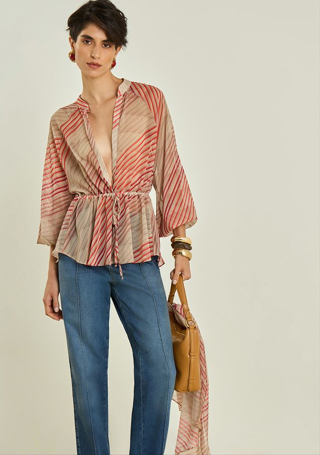 Blusa Maria.Valentina Solta Decote V Manga Longa Padrão Bege