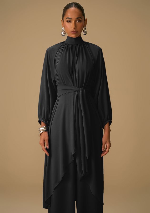 Blusa Maria.Valentina Solta Gola Alta Manga Longa Alongada Preto