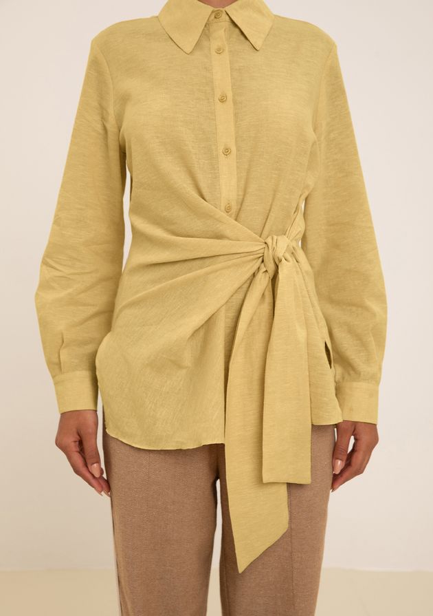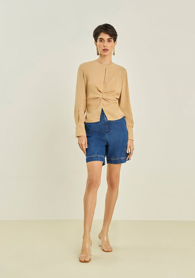 Camisa Maria.Valentina Solta Gola Clássica Manga Longa Padrão Bege