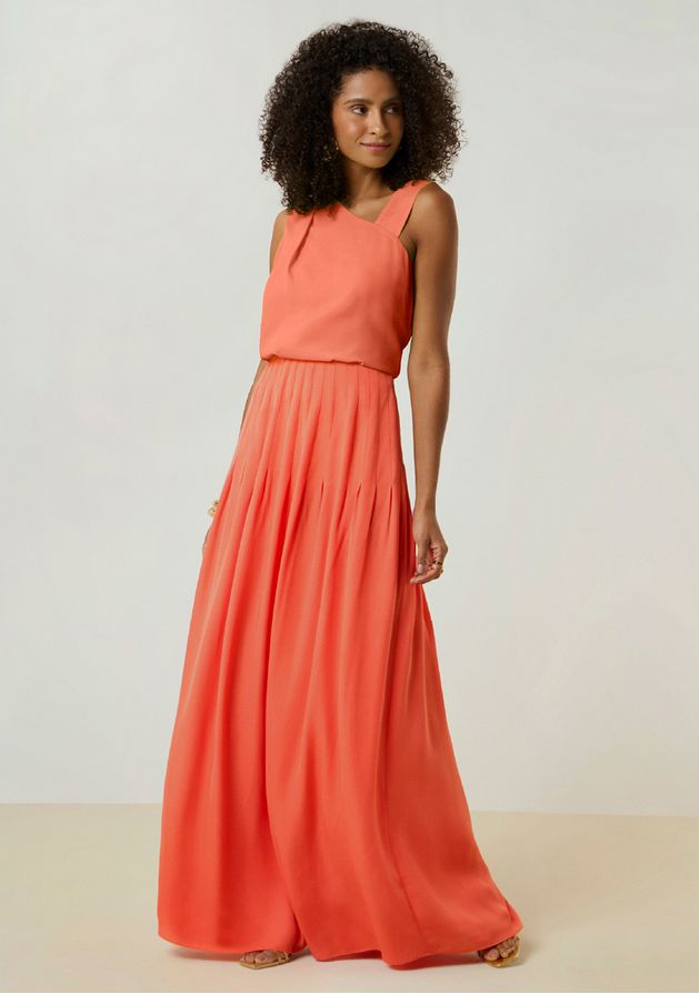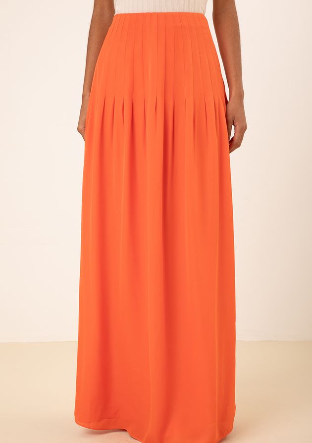 Saia Maria.Valentina Evasê Alta Longa Laranja