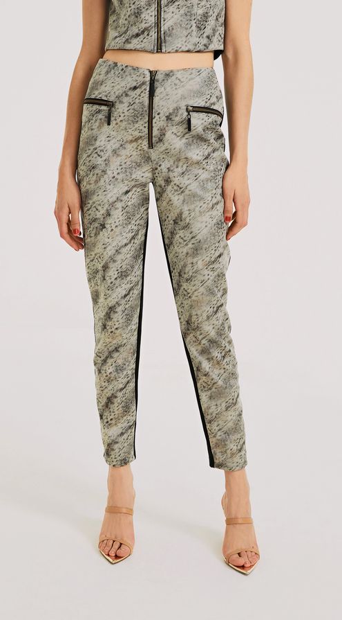 Calca Morena Rosa Skinny Cós Alto Detalhe Zíper Cinza
