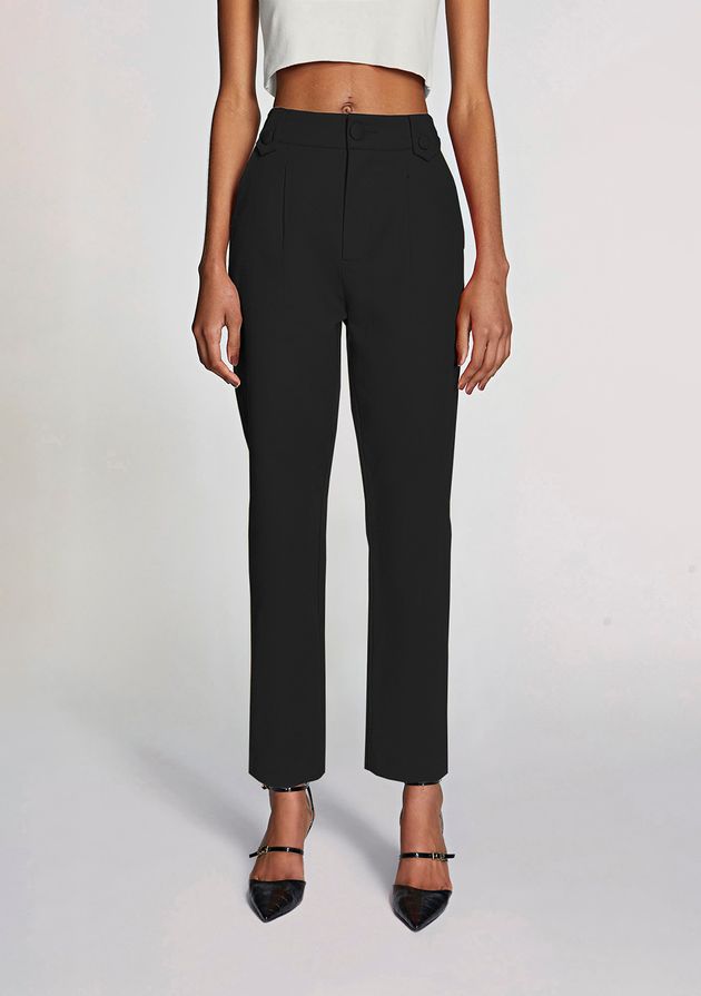 Calca Morena Rosa Skinny Alfaiataria Cós Alto Bolso Faca Preto