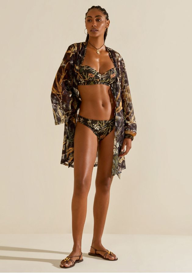 Macacão Morena Rosa Ajustado Decote Careca Sem Manga Curto Bege