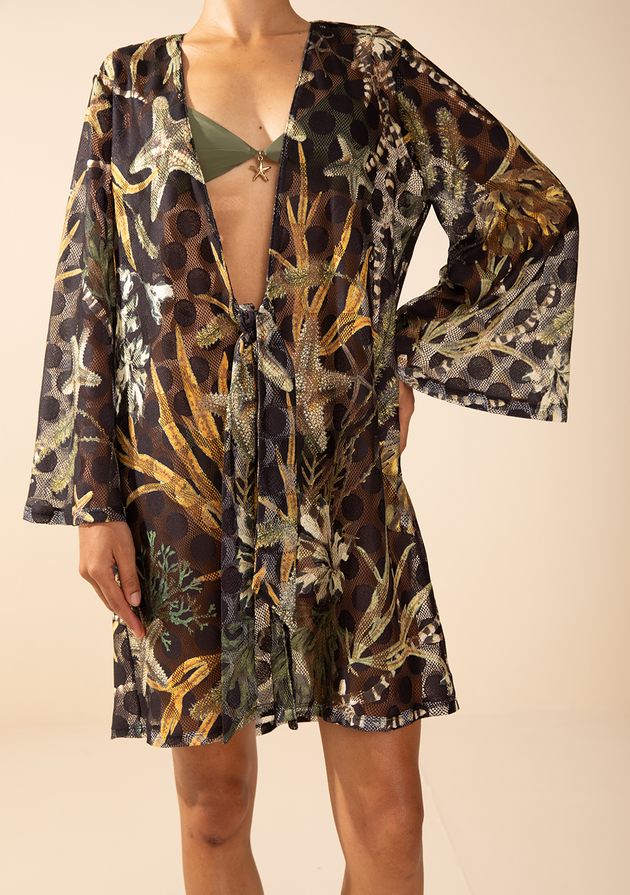 Vestido Morena Rosa Solto Decote V Manga Longa Curto Preto
