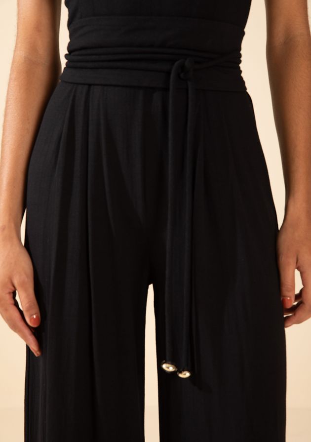 Macacão Morena Rosa Ajustado Decote V Sem Manga Longo Preto