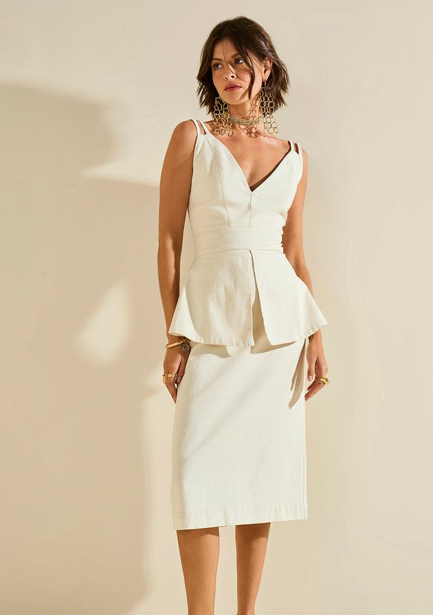 Vestido Morena Rosa Solto Decote V Com Alça Midi Bege