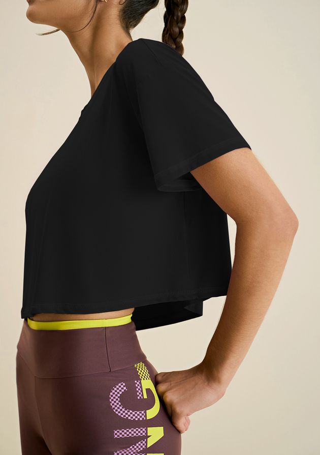 Top Morena Rosa Cropped Manga Curta Dry Fit Preto
