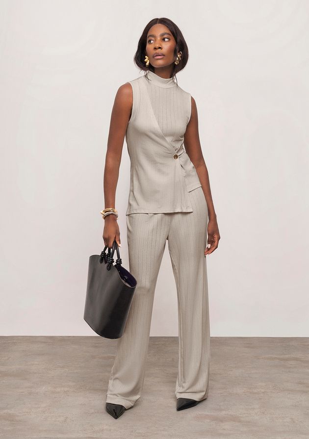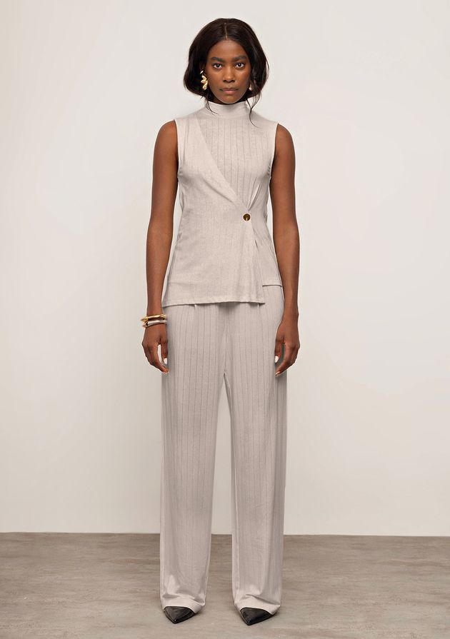 Regata Iódice Ajustada Gola Alta Alongada Bege