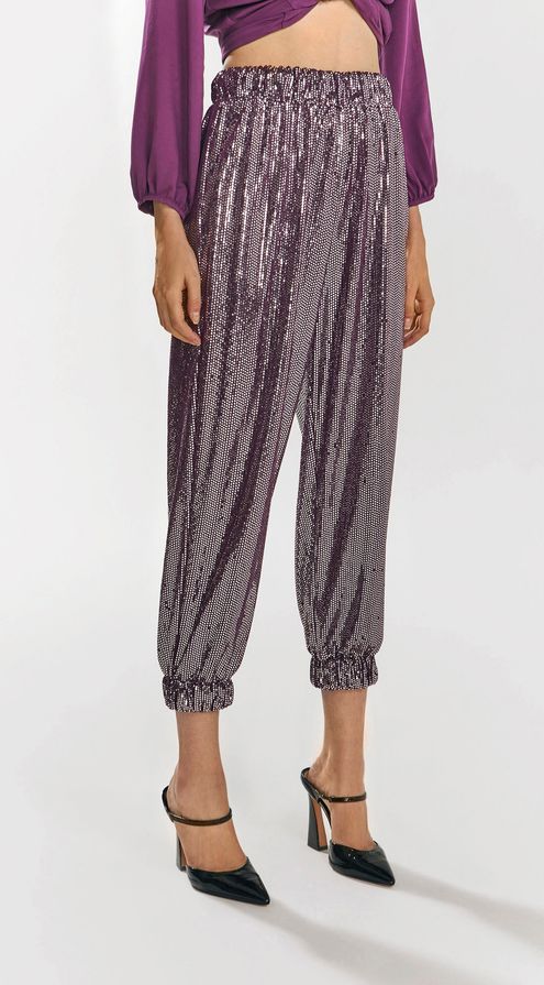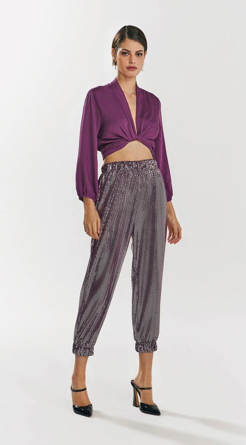 Calca Iódice Jogger Cós Alto Detalhe Elástico Roxo