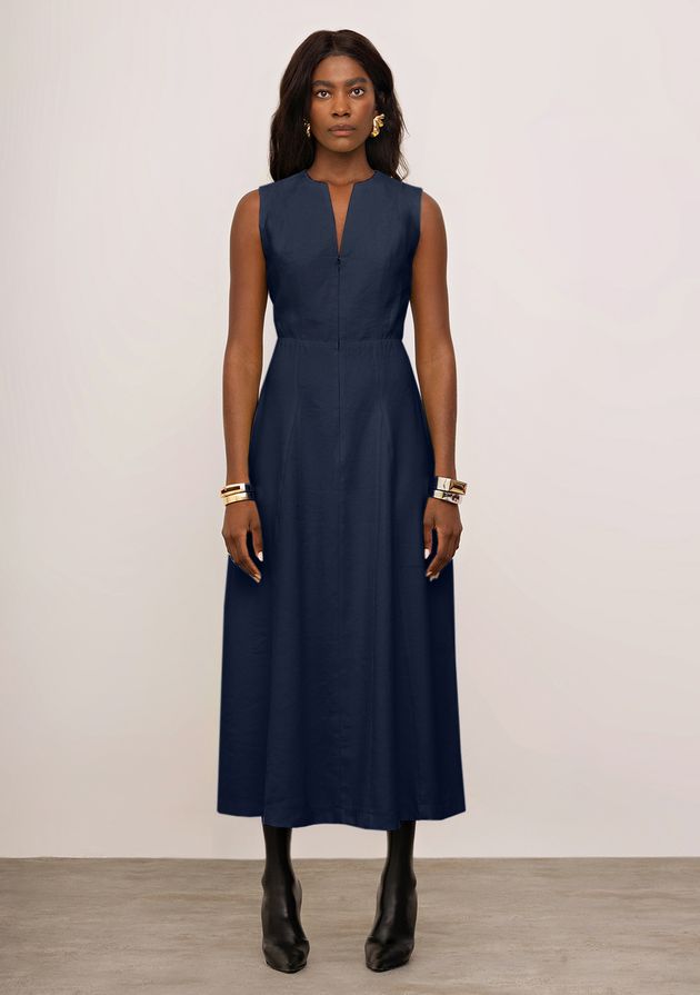 Vestido Iódice Solto Decote V Sem Manga Midi Azul