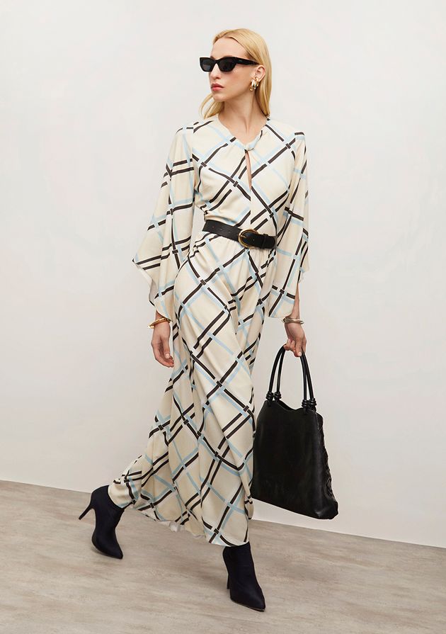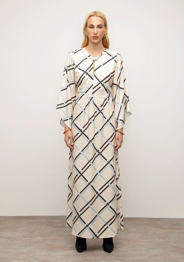 Vestido Iódice Solto Decote V Manga Longa Longo Off White