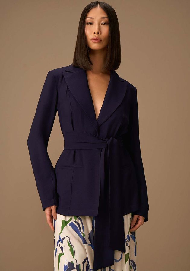 Blazer Maria.Valentina Ajustado Manga Longa Padrão Azul Escuro