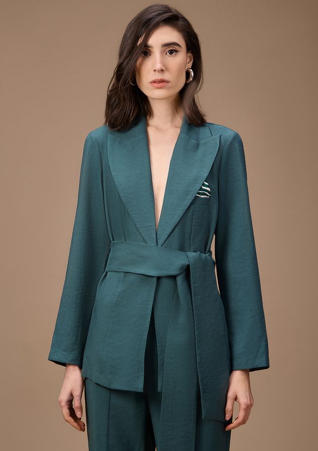 Blazer Maria.Valentina Solto Manga Longa Padrão Verde