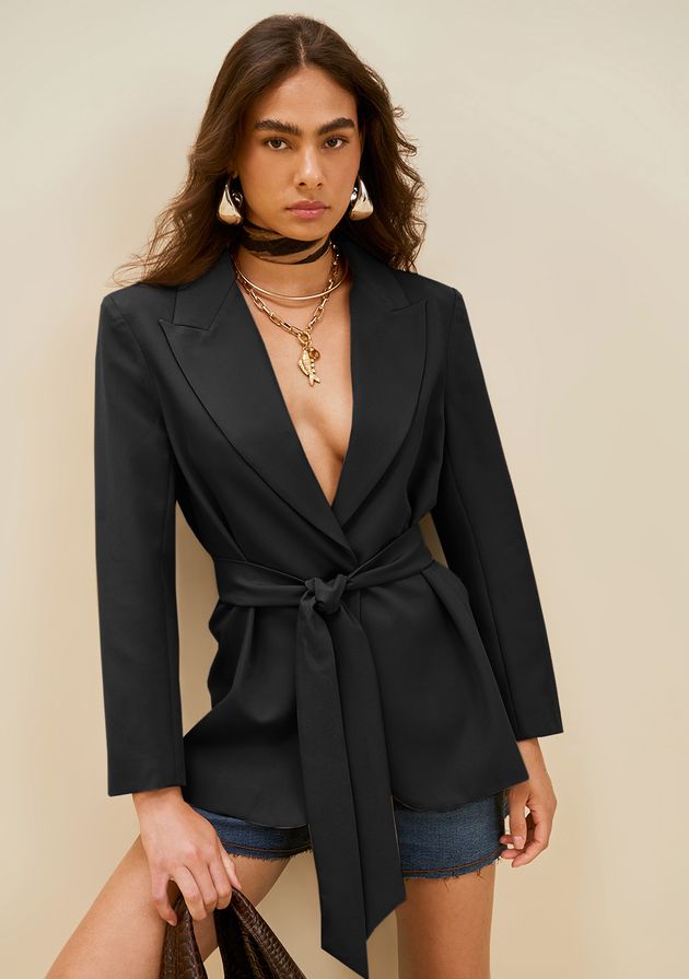 Blazer Morena Rosa Solto Manga Longa Padrão Preto