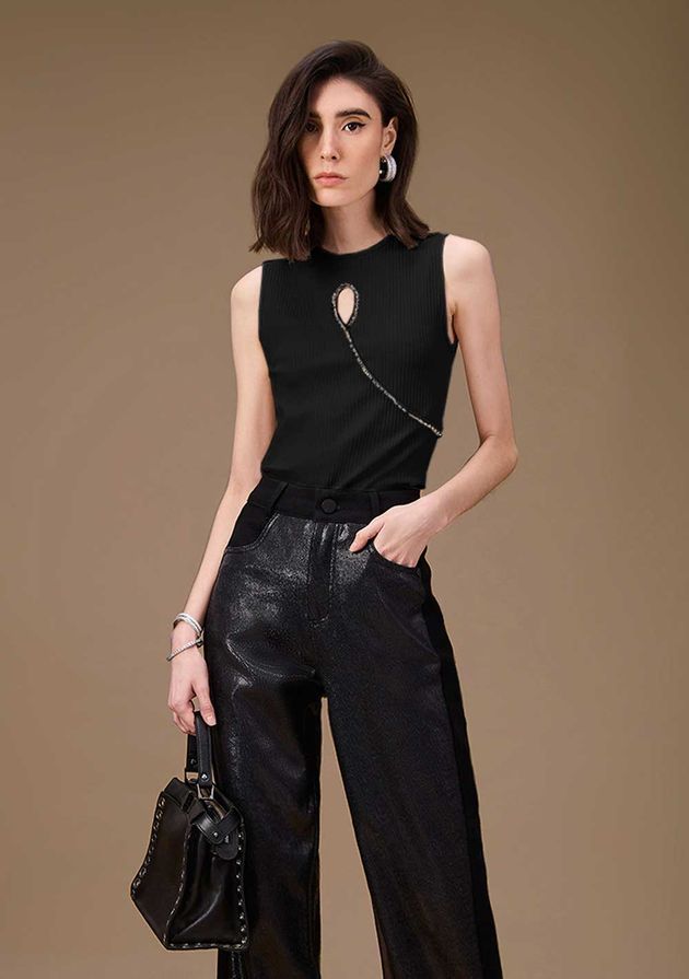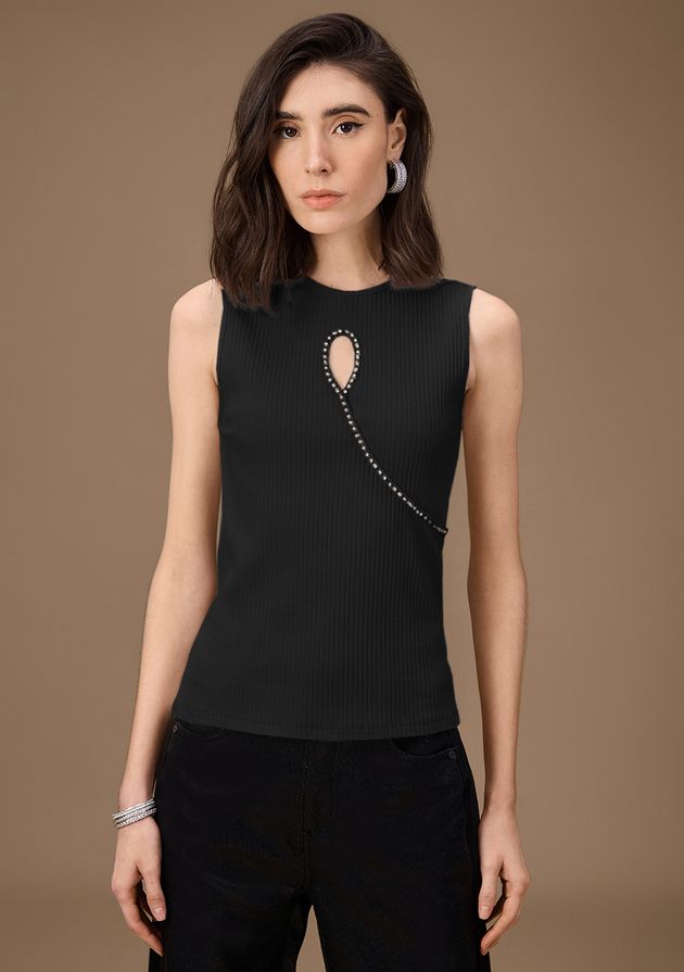 Regata Maria.Valentina Ajustada Decote Careca Padrão Preto