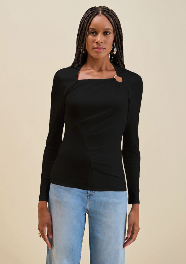 Blusa Maria.Valentina Solta Decote Careca Manga Longa Padrão Preto