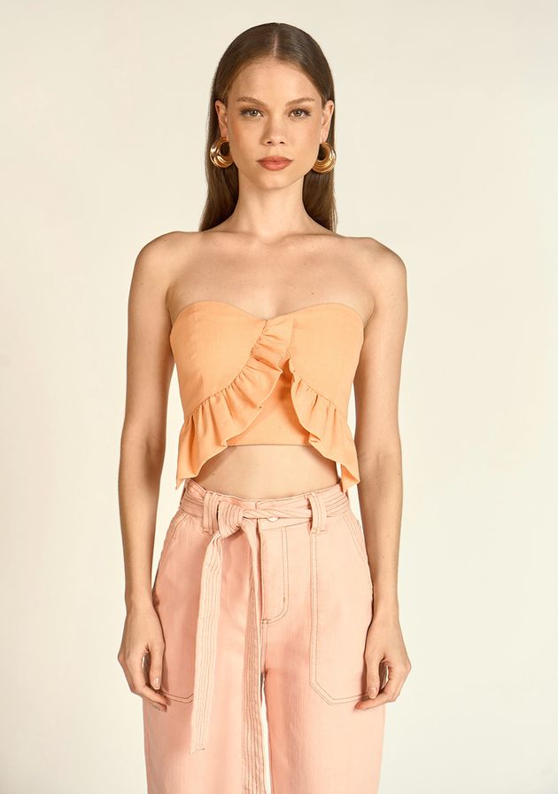 Top Zinco Cropped Tomara Que Caia Com Babados Laranja