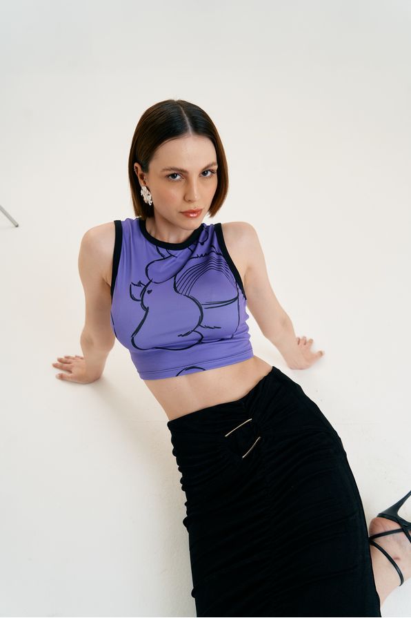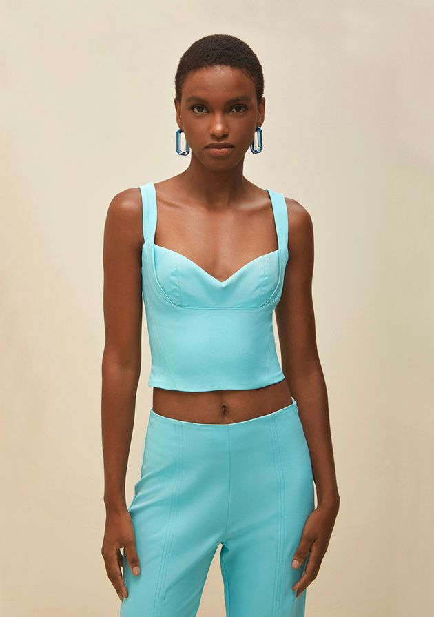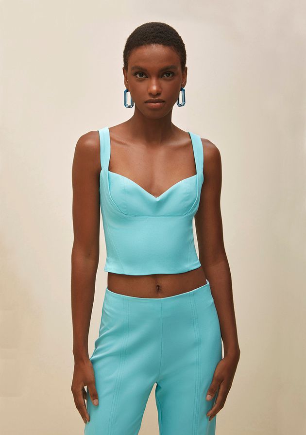 Top Morena Rosa Alfaiataria Alça Larga Detalhe Zíper Azul