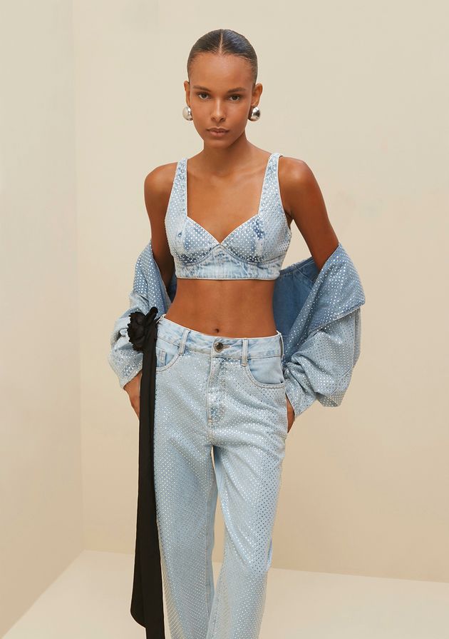 Top Morena Rosa Justo Alça Decote V Jeans