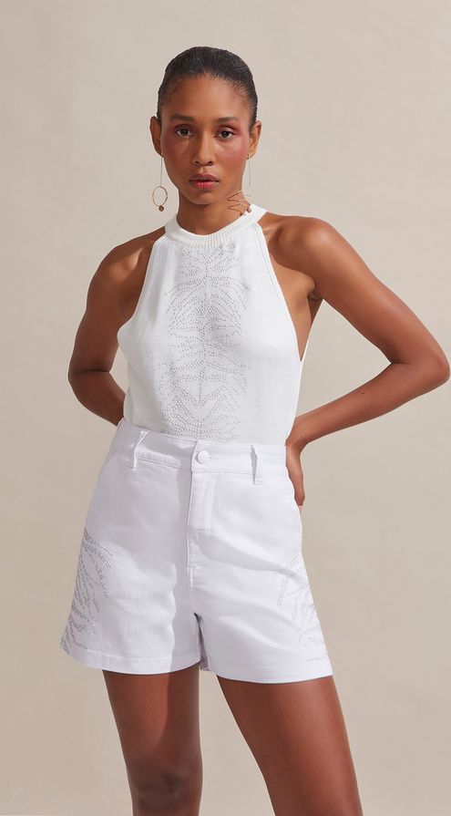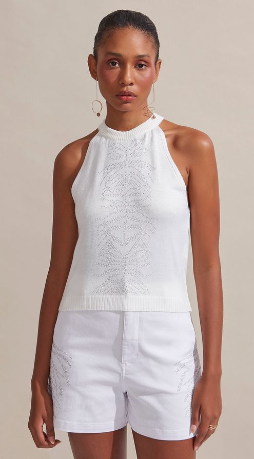 Blusa Maria.Valentina Gola Redonda Cava Francesa Com Termocolante Branco