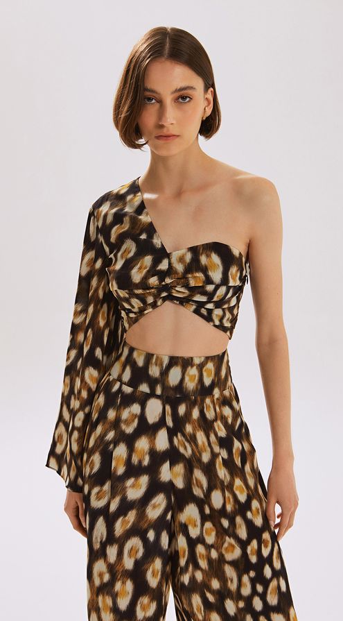 Blusa Iódice Ombro Só Manga Longa Torção Frente Marrom