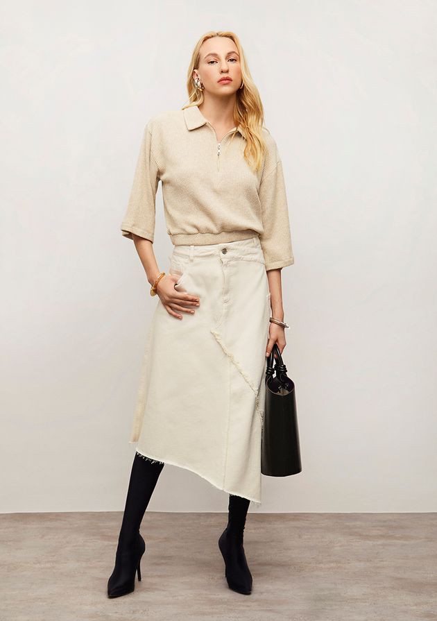 Blusa Iódice Solta Polo Manga Curta Cropped Bege
