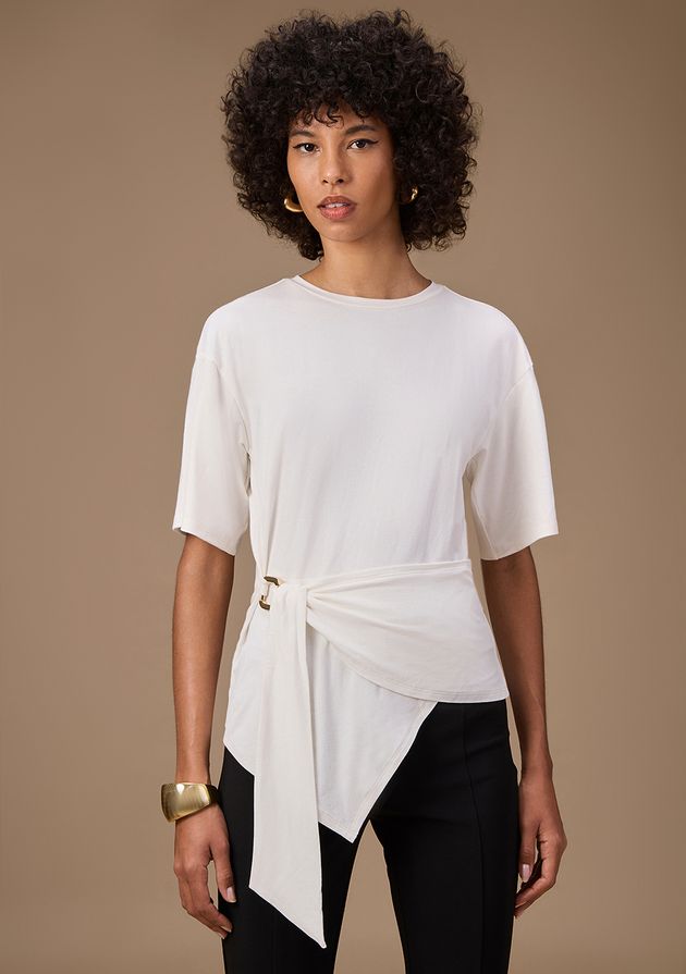 Blusa Maria.Valentina Ajustada Decote Careca Manga Longa Padrão Off White
