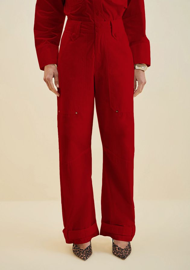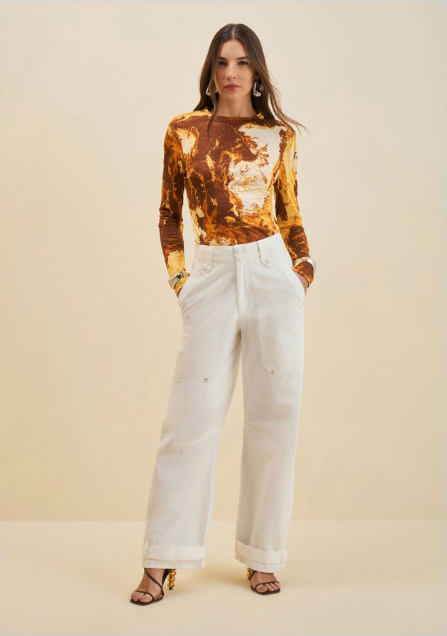 Calça Morena Rosa Wide Cós Alto Com Bolso Off White