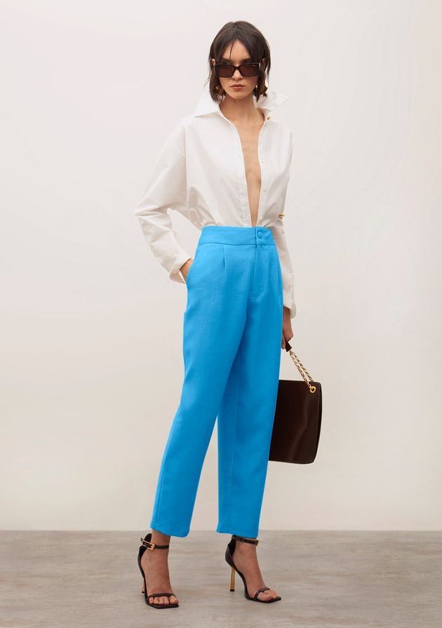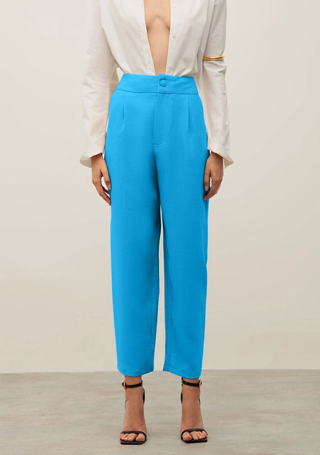 Calça Iódice Cenoura Cós Alto Com Pence Preto