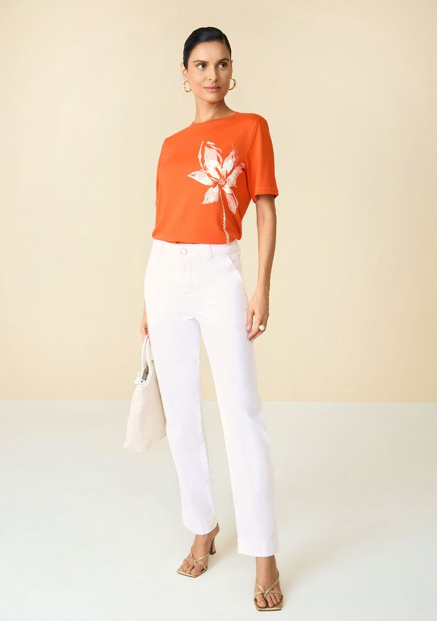 Tamanho48Adicionar à sacolaCalça Maria.Valentina Reta Slim Cós Intermediário Detalhe Pesponto Off White
