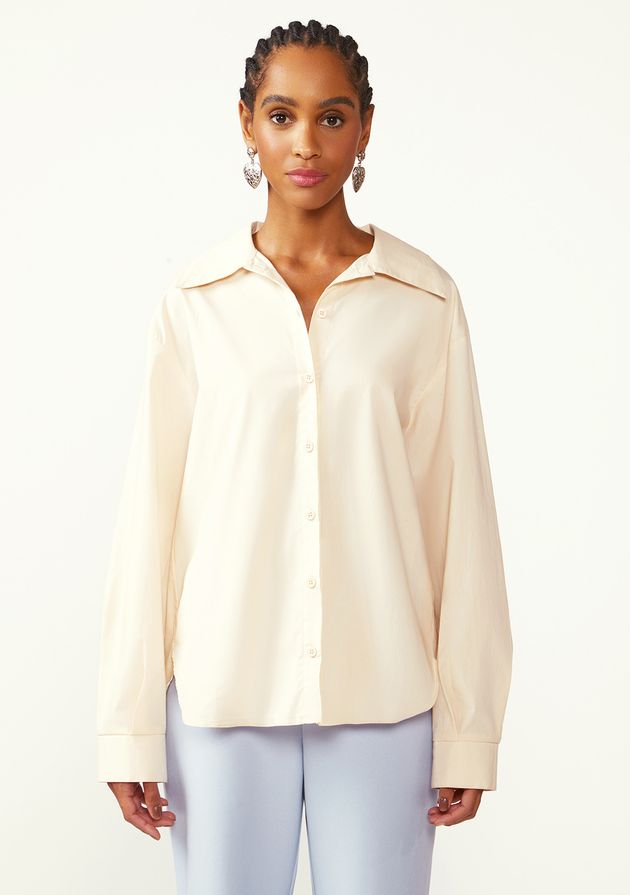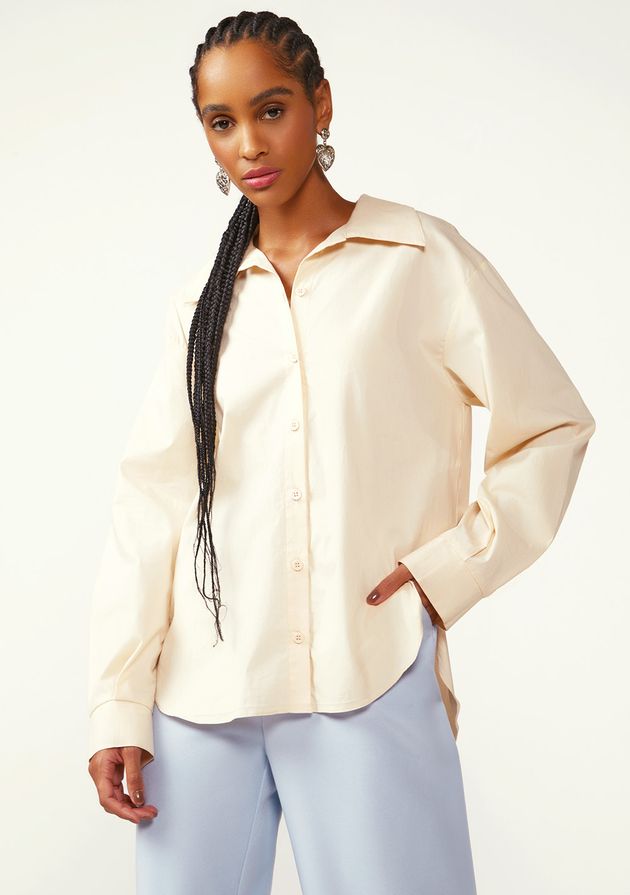 Camisa Zinco Solta Gola Clássica Manga Longa Padrão Bege
