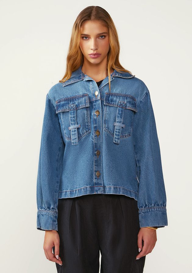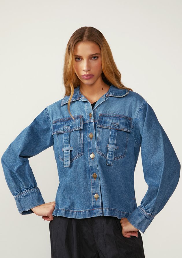 Camisa Morena Rosa Oversized Polo Manga Longa Alongada Azul